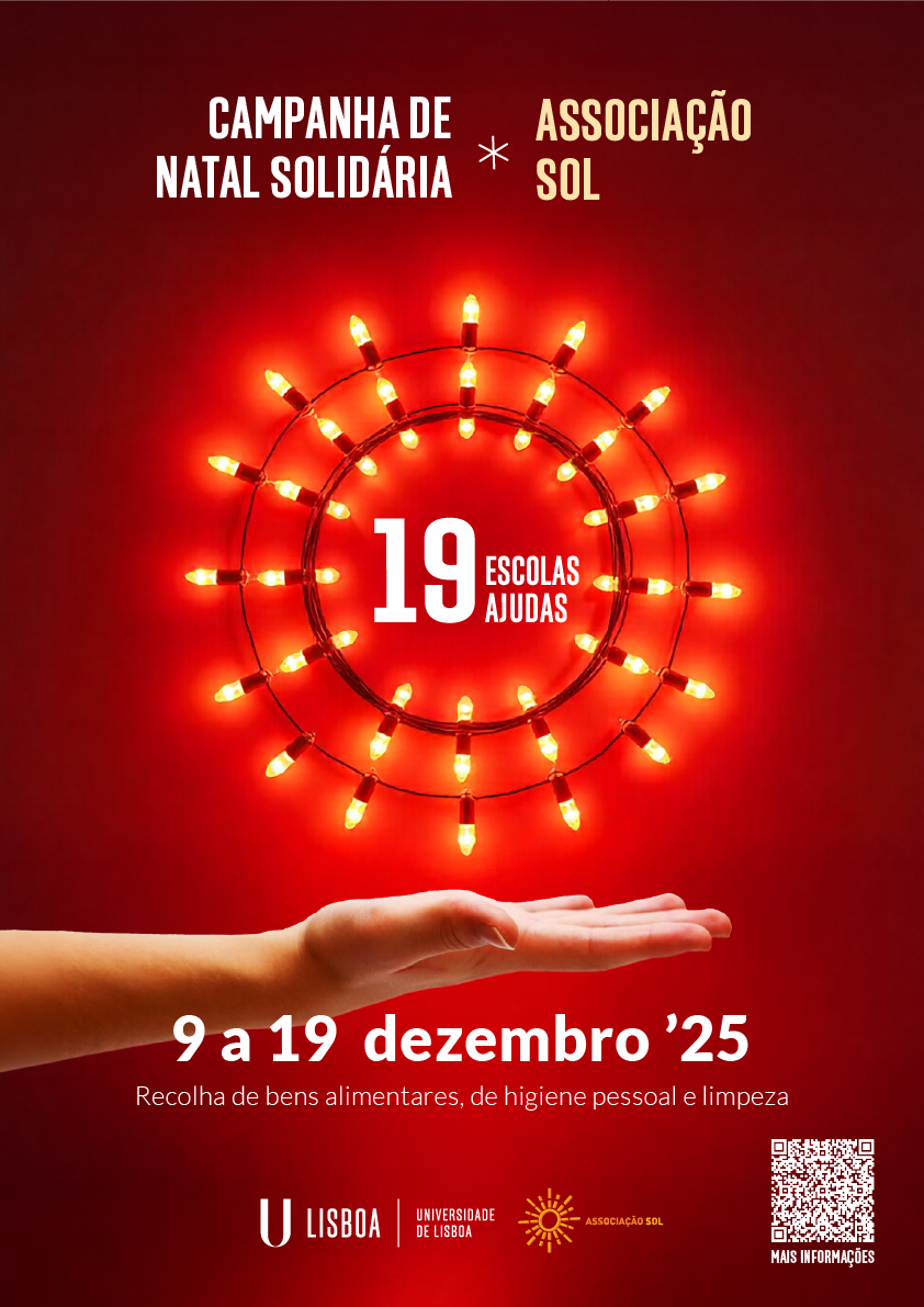 Entre 9 e 19 de dezembro de 2025, a Universidade de Lisboa promove a Campanha de Natal Solidária em apoio à Associação SOL, que presta cuidados a crianças e jovens que vivem com VIH/SIDA.
